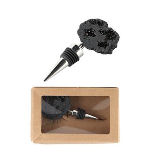 The Crystalline Bottle Stopper has a metal stopper. Geodes are known for holding special energy and are commonly used in meditation. The Crystalline Bottle Stopper comes in a small window case box.
