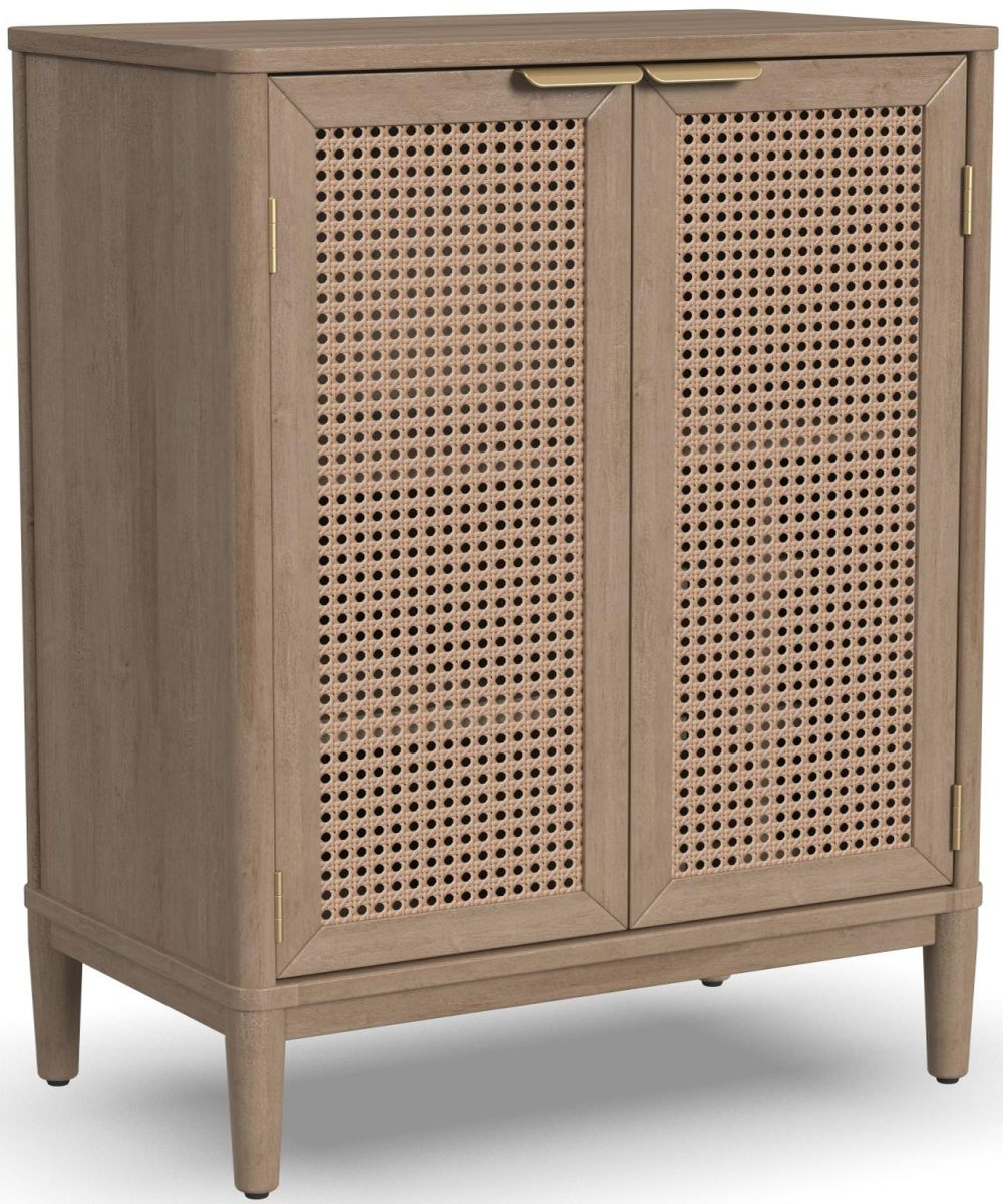 Provide a comforting, nostalgic feel to your dining room or living space with the Brentwood Bar Cabinet. Offering a modern take on mid-century boho style, this bar cabinet features clean lines, brass pulls, and the natural tones and texture of woven cane for a beautiful retro look.