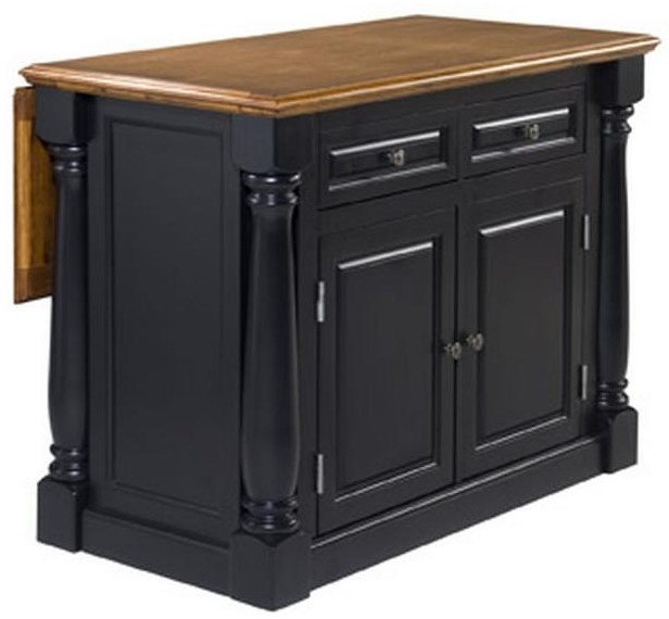 This Monarch Kitchen Island by homestyles blends upscale design with state-of-the-art functionality. The stylish design includes a solid hardwood top with profiled edges and framed side and back panels in a black finish.