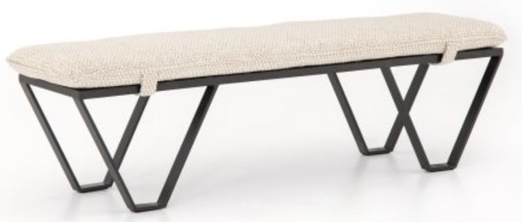 Architectural interest meets industrial inspiration in the Scout bench. Its distressed, gunmetal-finished iron frame takes the spotlight, paired with a minimalistic oatmeal-colored cushion for comfort. This piece will make a bold statement to your living room.