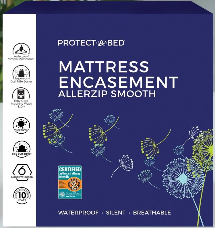 The AllerZip Smooth Mattress or Box Spring Encasement keeps your sleeping area clean, allergy-free and bed bug-proof for a healthy night’s rest. Total coverage solution wraps your mattress with 6-sides of waterproof Miracle Membrane protection.