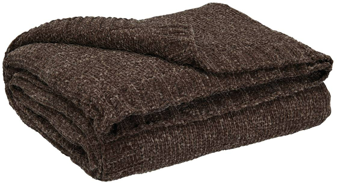 Comfort meets casually chic style in this throw blanket. Its neutral hue and knitted construction create trendy textural variation when draped over a sofa or the foot of a bed. And it goes beyond style, with the soft chenille fabric acting as a cozy companion for your morning reads or movie nights.