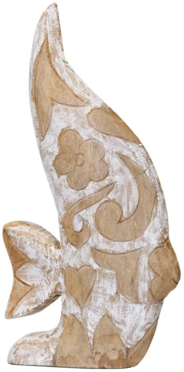 The natural wood fish carved sculpture is a testament to artisanal mastery. Handcrafted from solid wood, its intricate detailing captures the essence of marine life with precision. This piece, with its natural finish and organic textures, serves as a captivating ode to the beauty of craftsmanship, bringing aquatic allure to any space.